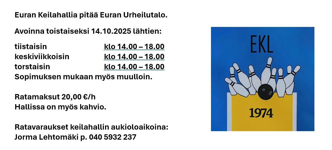 Euran keilahallin nettisivuilla näkyy oneline schoring osoitteessa: